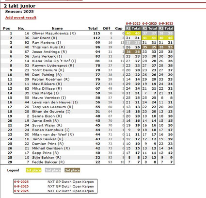 Senna pakt in het algemeen klassement de 19de plaats en bij de Rotax klassement een P12. Kortom haar zelfvertrouwen heeft terug gewonnen en haar persoonlijke energie weer gevonden. Hopelijk kan ze deze lijn doorzetten met haar coach.