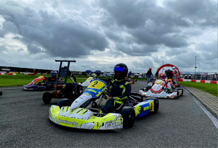 Het wordt een droge race en iedereen start op slicks. Senna start op de eerste startrij als P2, de nummer 3 haalt haar in bij het opwarmen van de banden in de opwarmronde, okay? Bij het formeren staat iedereen op de goede plaats en kunnen we gaan starten. Alle snelle jongens die normaal voor Senna rijden hijgen nu in haar nek en dat is voelbaar. Ze wordt wijd gedrukt bij de start verliest daardoor een aantal plaatsen, maakt niet uit laat ze maar zien dat je voor je plaatst vecht. Senna ligt op P5 en vecht met hand en tand haar plaats. Degene achter haar wilt haar op dezelfde plaats inhalen waar zij telkens een andere lijn pakt maar voordat hij haar kan inhalen gooit ze tot drie keer toe de deur hard dicht en dan heb ik het over millimeter werk. Oh, wat rete spannend en wat doet ze het goed tussen de testosteron mannetjes. Ze gaat bijna in de rondte maar kan de kart houden en blijft zelfs voor hem rijden. We zijn over de helft als het hem toch lukt om haar in te halen ze rijdt nu op P6. Nummer 7 zit op haar bumper met nog drie minuten op de klok te gaan, het begint ook weer te druppelen. De baan wordt glad en je ziet iedereen glijden, Senna verdedigd haar 7de plaats tot aan de finishvlag. Ze komt paniekerig binnen en vertelde dat ze bijna weer hetzelfde mee maakte als in de tweede clubrace en kreeg daarvan flashbacks. Gelukkig op haar in kunnen praten zodat de focus op race twee ligt en niet op het geen wat bijna gebeurde.